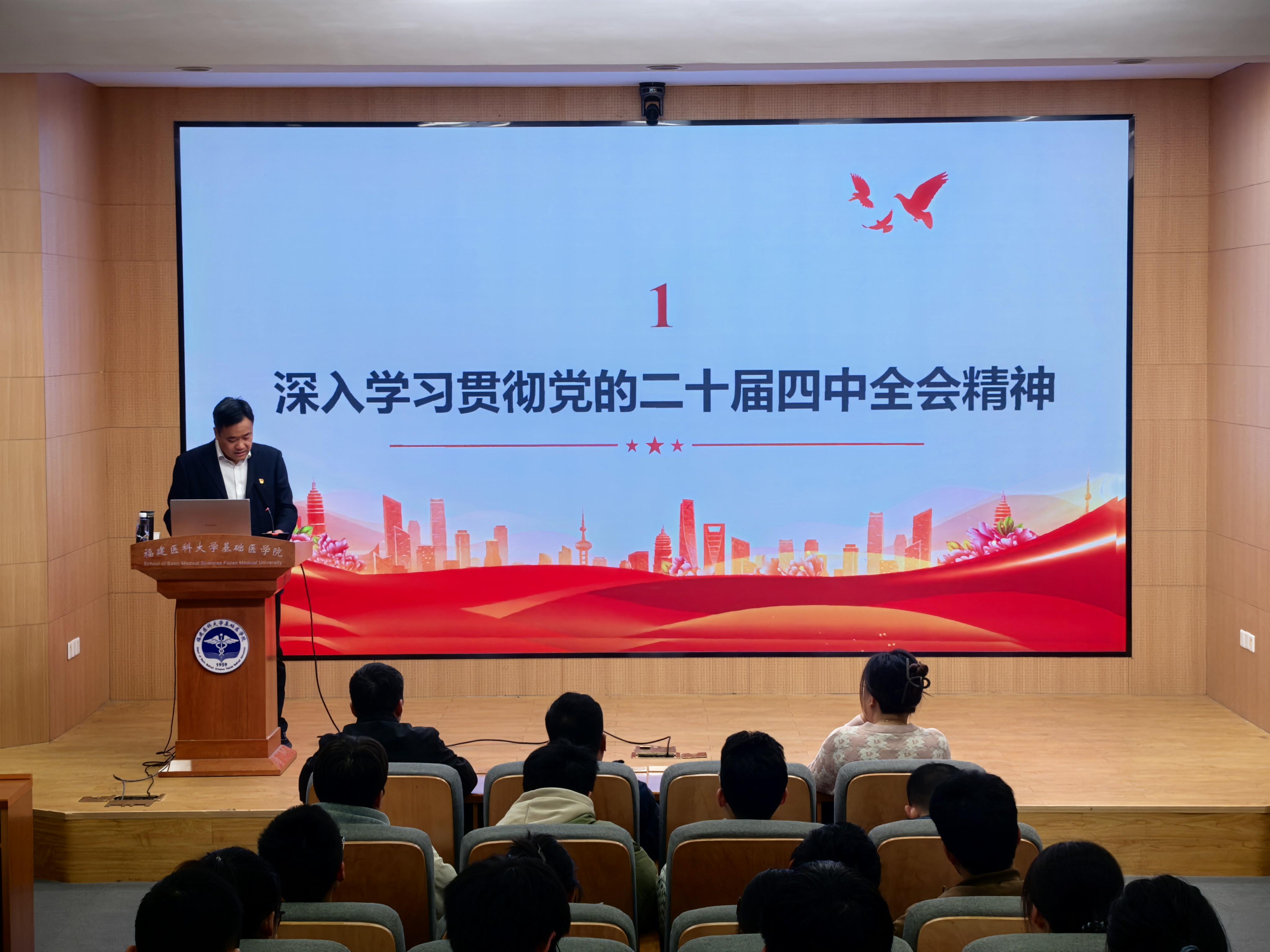 近日,熟女a片 党委书记郭松斌面向联系支部党员、师生代表,开展党的二十届四中全会精神专题宣讲会。宣讲紧扣全会核心要义,结合学院发展实际,引导全体与会人员深刻领会精神实质、凝聚奋进力量。